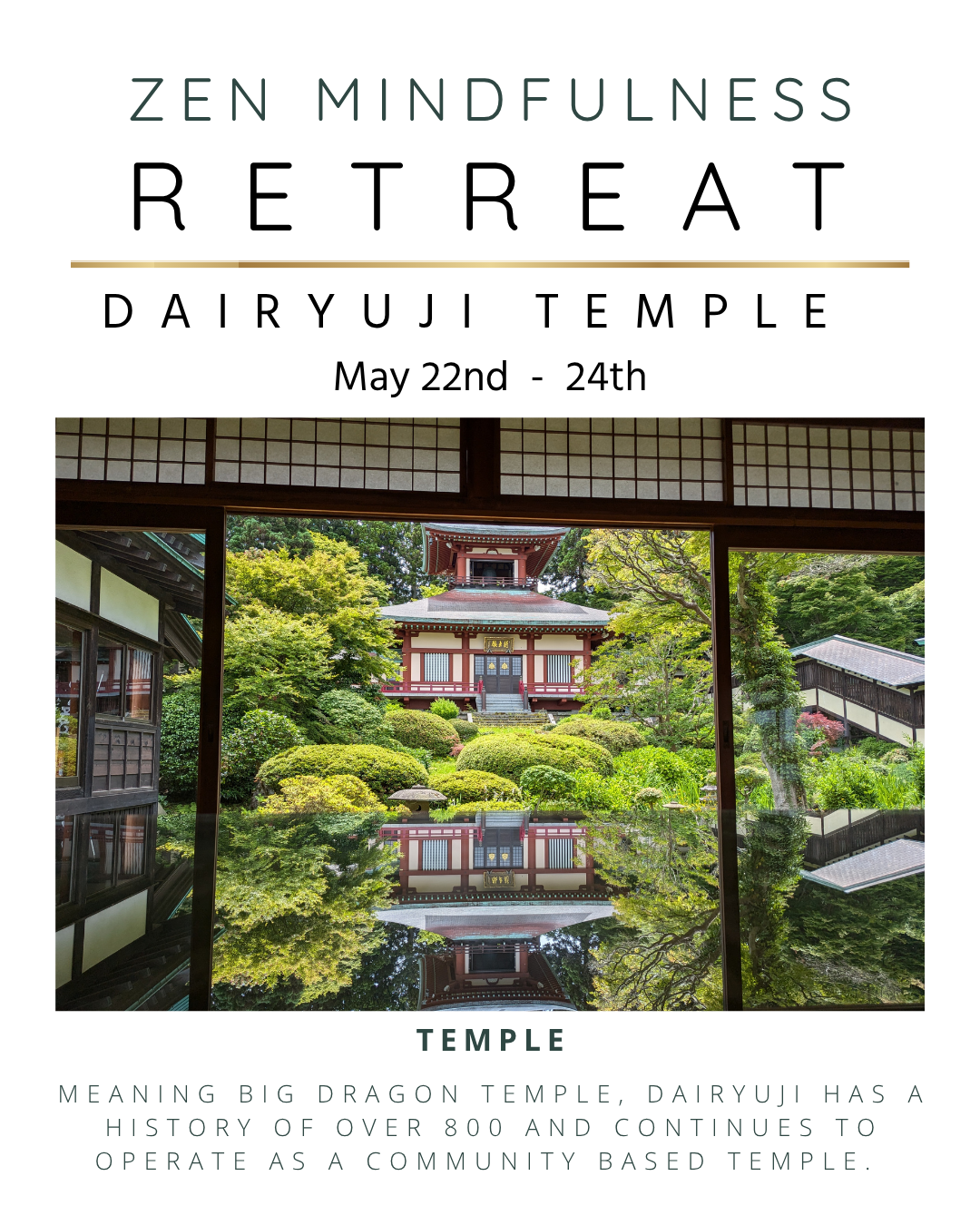 There are spots still available for our upcoming Zen Mindfulness Retreat this May 22nd - 24th, 2026. You can learn more and register here: